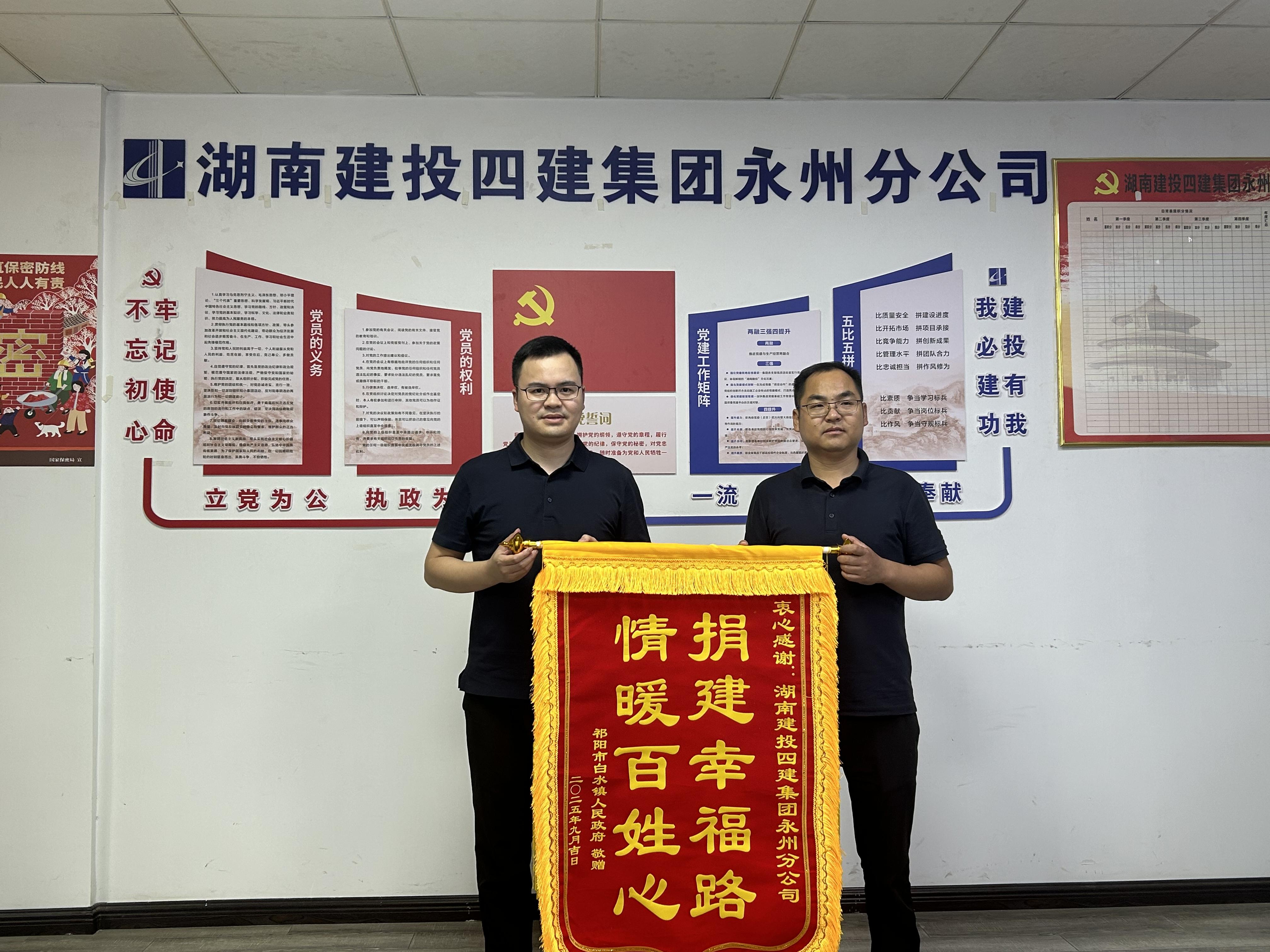 永州分公司表示,收到錦旗既是榮譽也是責任,分公司將始終秉持“服務(wù)地方、助力發(fā)展”理念,未來繼續(xù)發(fā)揮專業(yè)優(yōu)勢,投身地方基建與公益事業(yè),為區(qū)域經(jīng)濟社會高質(zhì)量發(fā)展貢獻力量,譜寫企地共贏新篇章。